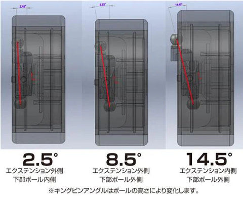 Depending on the postion of knuckle ball, you can change the king pin angle to 2.5deg, 8.5deg, 14.5deg